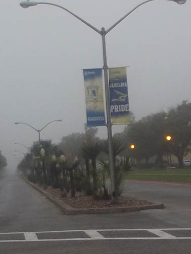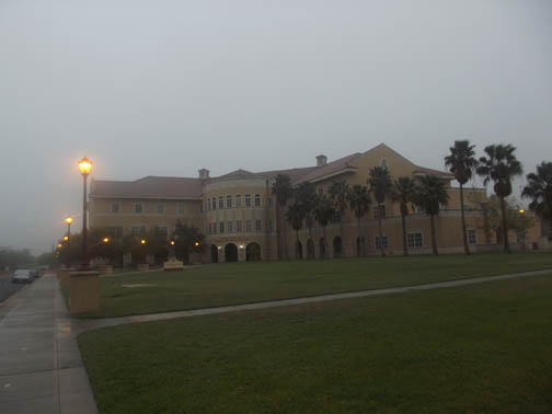 | Heavier mist as we enter the A&M Campus. |