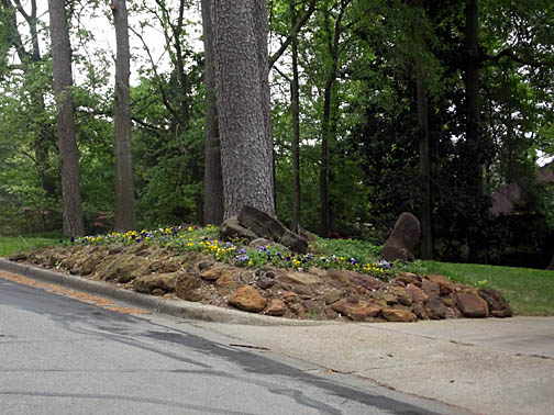 Rock garden and pansies. |