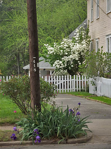 Iris and Snowball Bush. |
