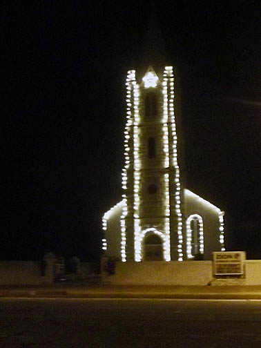 | Zion Lutheran Church lite up. |