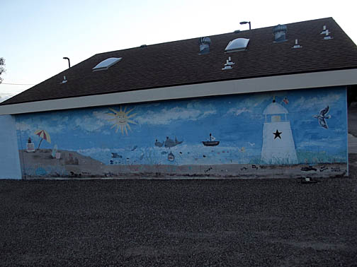 | Mural on swimming pool wall. |
